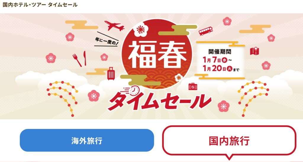 JTBタイムセール2026年1月は、新春福春キャンペーンとして開催中です。